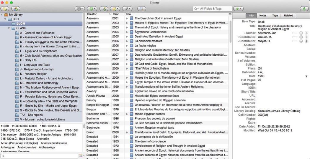 Su objetivo es la clasificación virtual de los materiales bibliográficos disponibles en la Biblioteca de Humanidades de UCM y de la herramienta “Google Books”, es decir, aquellas obras que están disponibles para los estudiantes UCM sin necesidad de salir del campus, facilitando así su consulta y su integración en el flujo de trabajo del alumno por medio de la herramienta informática Zotero (www.zotero.org). Esta herramienta permite al alumno no sólo consultar la bibliografía pertinente al trabajo que está realizando, sino también incorpararla al texto de su trabajo, insertar las referencias oportunas compilando finalmente de modo automático la bibliografía del trabajo en el estilo de citación que se requiera.