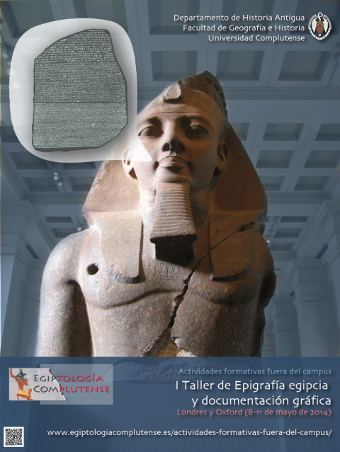 El I Taller de Epigrafía Egipcia y Documentación Gráfica organizado por Egiptología Complutense tuvo lugar entre los días 8 al 11 de mayo de 2014. El Taller fue impartido por José R. Pérez-Accino (Universidad Complutense) y contó con la colaboración de varios alumnos en la organización y coordinación del mismo. Se visitaron las colecciones egipcias del British Museum y Petrie Museum (Londres) y del Ashmolean Museum (Oxford) en el Reino Unido. Se realizó una visita general a las colecciones para centrarse a continuación en las colecciones de piezas e inscripciones egipcias. Los alumnos llevaron a cabo una serie de actividades de lectura de inscripciones y de documentación gráfica que continuarán posteriormente en la Facultad de Geografía e Historia trabajando con los materiales obtenidos.