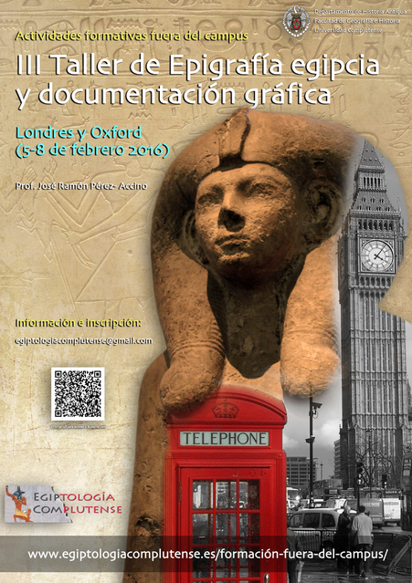 El III Taller de Epigrafía en Londres y Oxford organizado por Egiptologia Complutense, tuvo lugar del 5 al 8 de febrero de 2016. Como en ocasiones anteriores, las explicaciones egipcias en el British Museum de Londres y en el Ashmolean Museum de Oxford corrieron a cargo del Dr. José Ramón Pérez- Accino. Además, se aprovechó la visita al British Museum para visitar la exposición Egypt. Faith after the Pharaohs que cerró el pasado 7 de febrero de 2016.