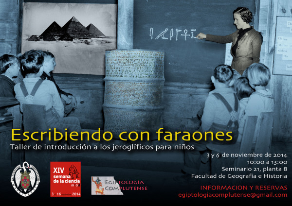 Este taller está destinado a familiarizar a niños con el sistema de escritura de los antiguos egipcios de un modo interactivo y entretenido. Se han programado dos fechas para alumnos de diferentes edades: